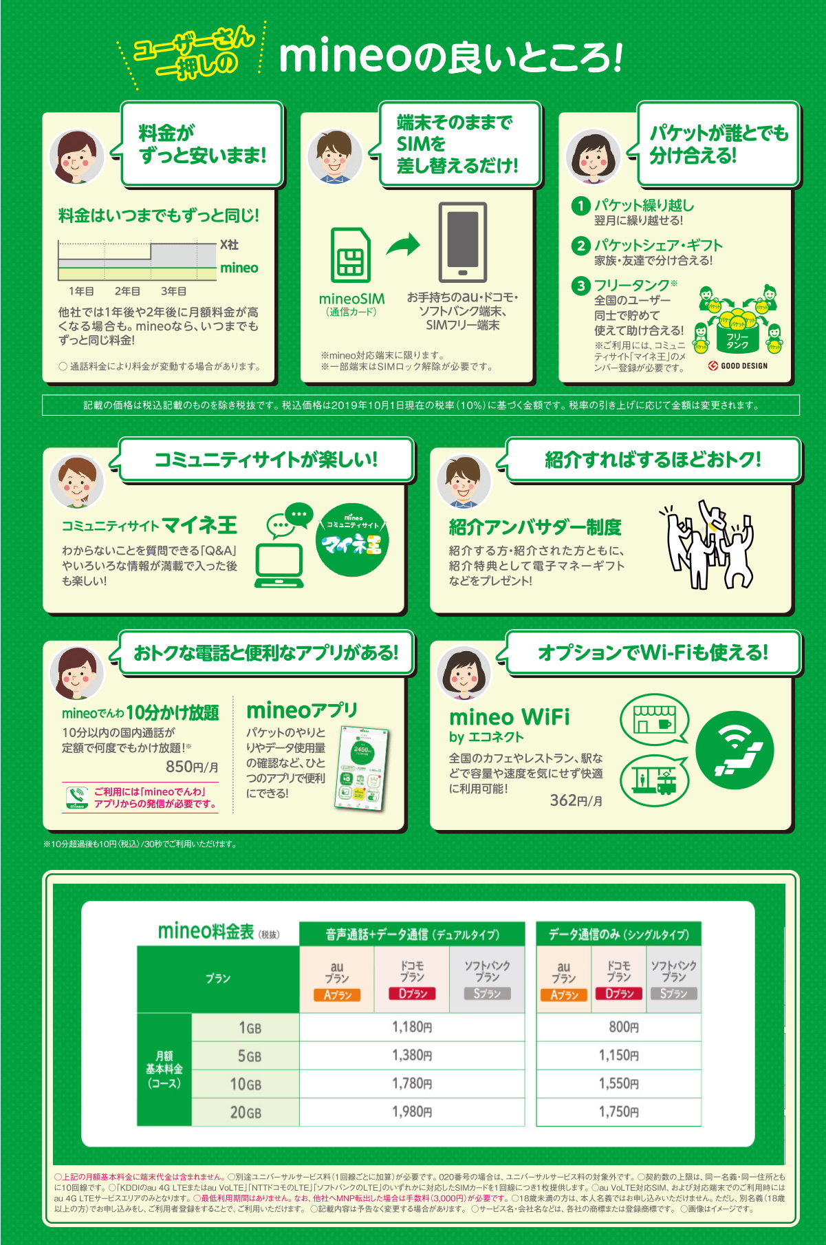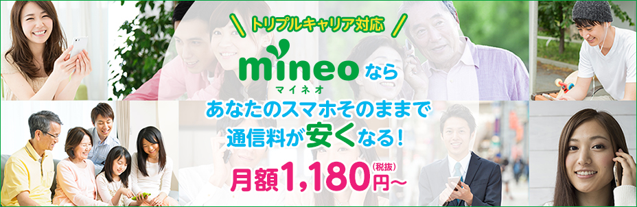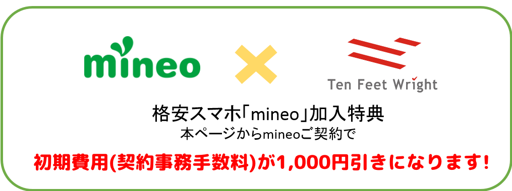 - 【特典内容】mineo契約事務手数料が1,000円(税別)引きとなります。