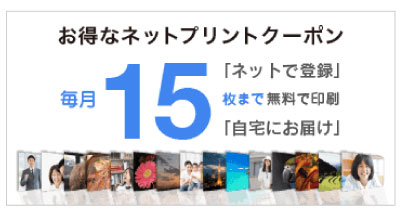ネットプリントサービスも利用可能! タブレットやスマホ、デジカメで撮った写真を月15枚まで無料で、印刷、 自宅にお届け。
