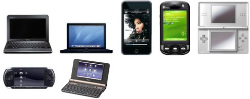 - 例:ノートパソコン、PSPやDSなどのゲーム機、iPhoneやAndroidなどのスマートフォン、iPad、iPod(R)touchなど